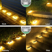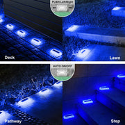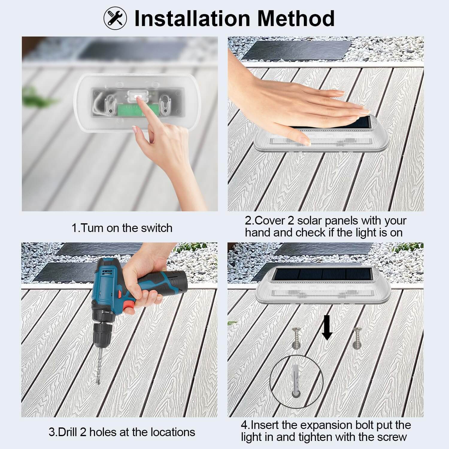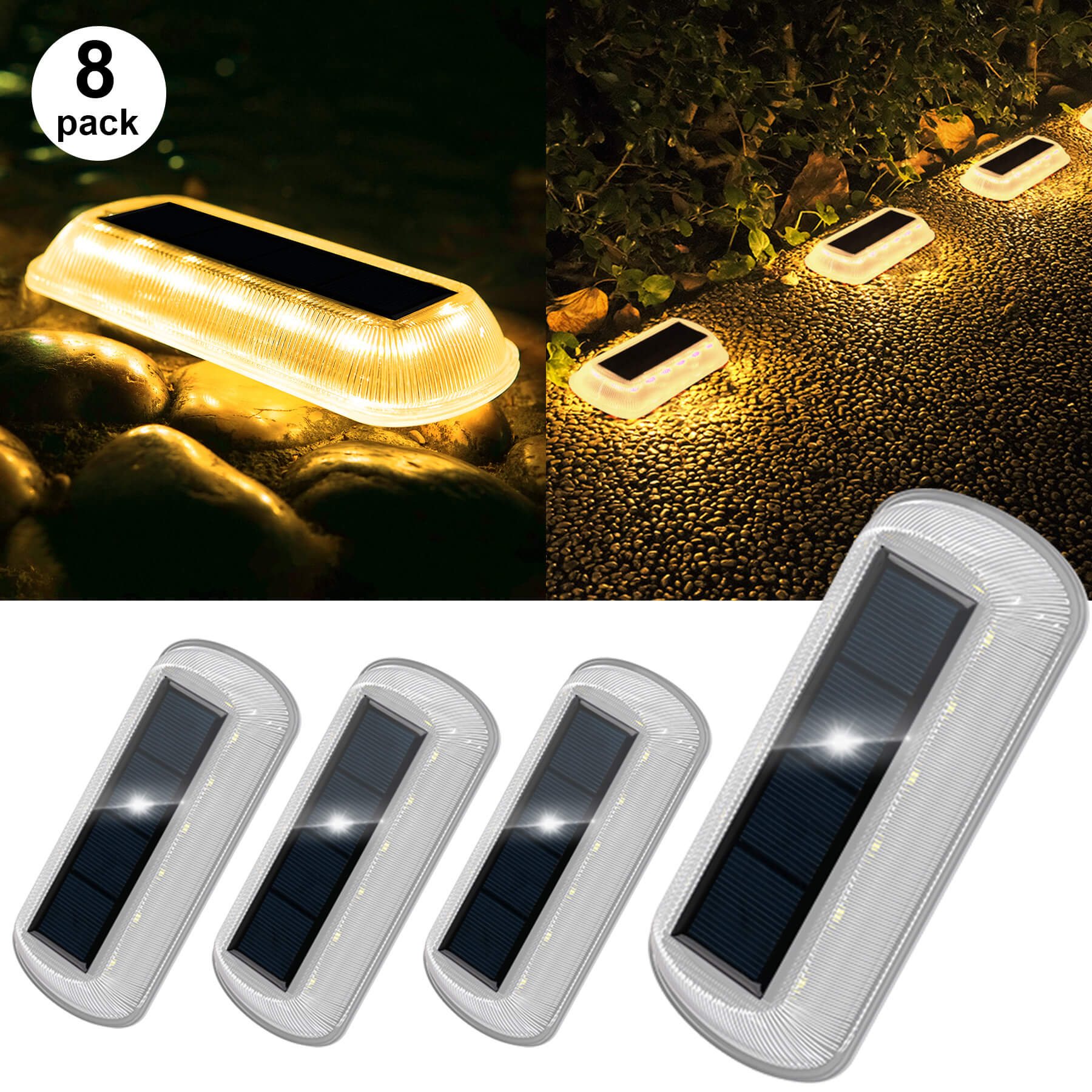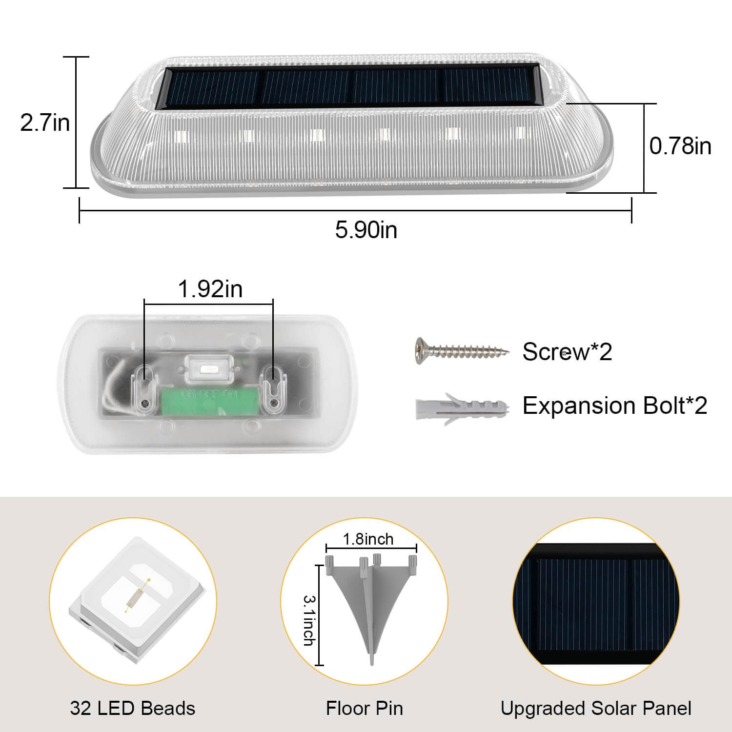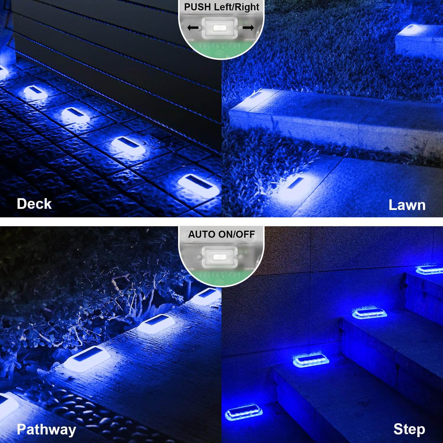 - 【Solar Deck Lights】Our deck lights are made of super-bright LED lights (light source), the whole light wide coverage and long life. Designed with blue/warm white lighting, this outdoor solar light has a high-grade appearance, exquisite and beautiful, providing pleasant light and mysterious colors for your garden, sidewalks, patio corridors, lawns, trails, garages and other outdoor places.