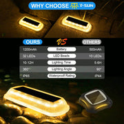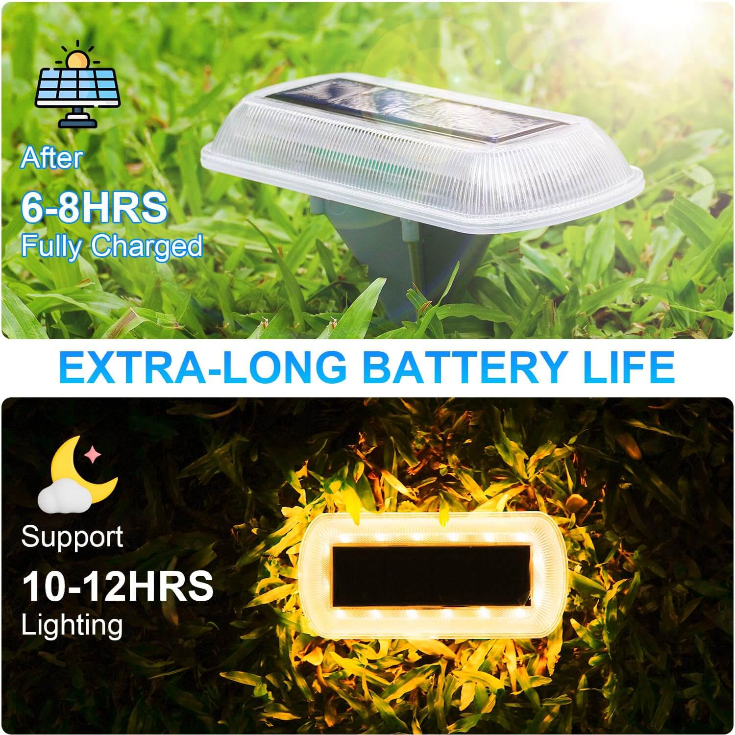 - 🔋【Upgrade 1200mAh Battery】T-SUN solar deck light are equipped with high conversion rate solar panels and 1200mAh capacity battery that absorb sunlight quickly, charging only 6h under sufficient light. This solar powered driveway lights able to provide lighting for 8-12 hours after being fully charged that provides a safe and comfortable experience for you!