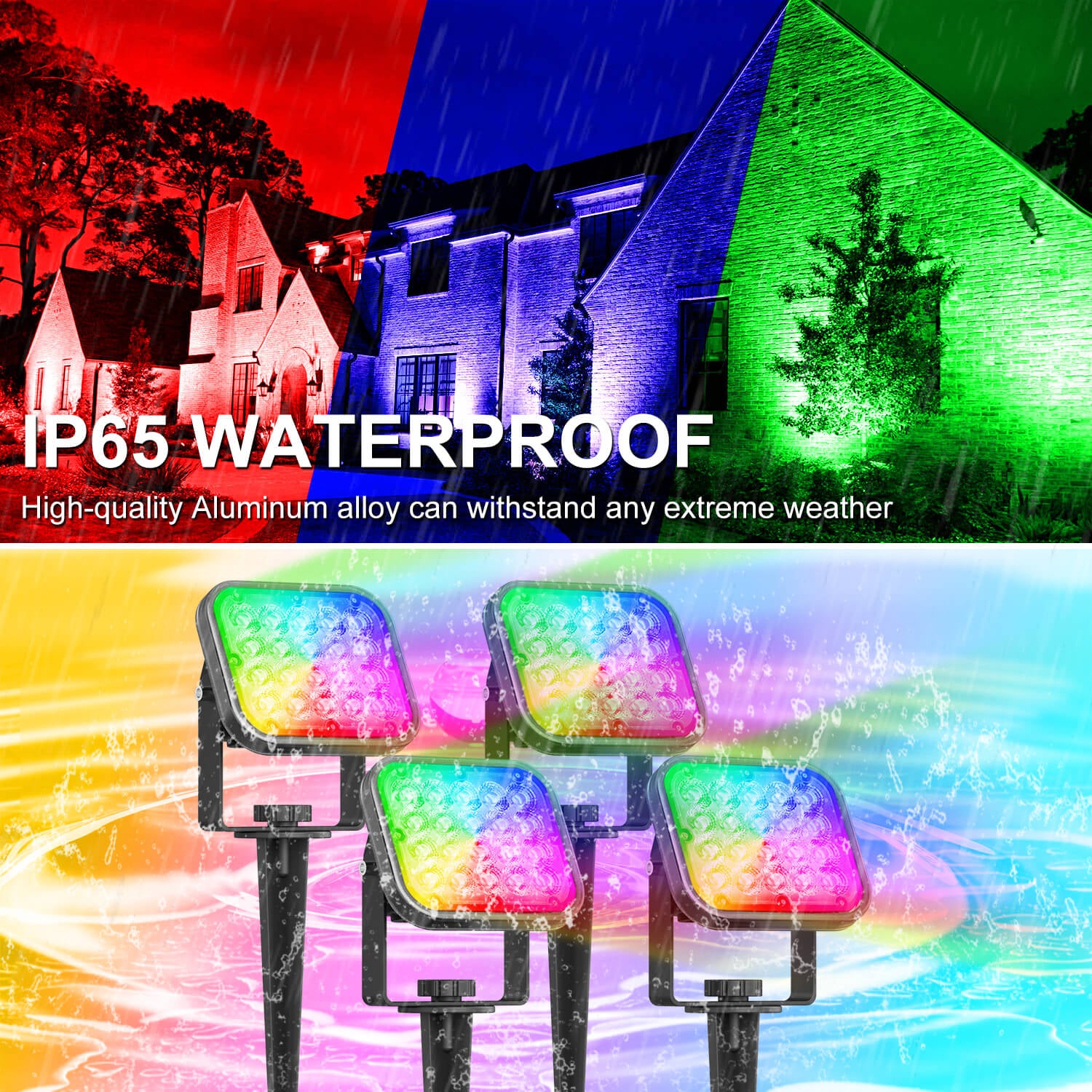• IP65 WATERPROOF - Our outdoor landscape spotlights are made of aluminum alloy high pressure die casting, which is light, strong and corrosion resistant. IP65 waterproof rating, can withstand extreme weather such as rain, snow, high temperature and so on.