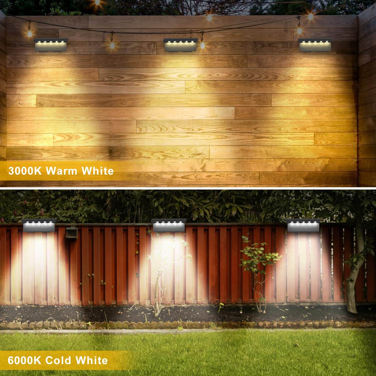 • 2 COLOR MODE - 2 color modes: 3000K warm white light & 6000K cold white light. Each of our outdoor deck lights allows you to select a single color with the push button, perfectly defining colors for your garden, patio, step, fence and so on. Cover the panel and push the button to check if the light is on, then hit it again to select a color you prefer.