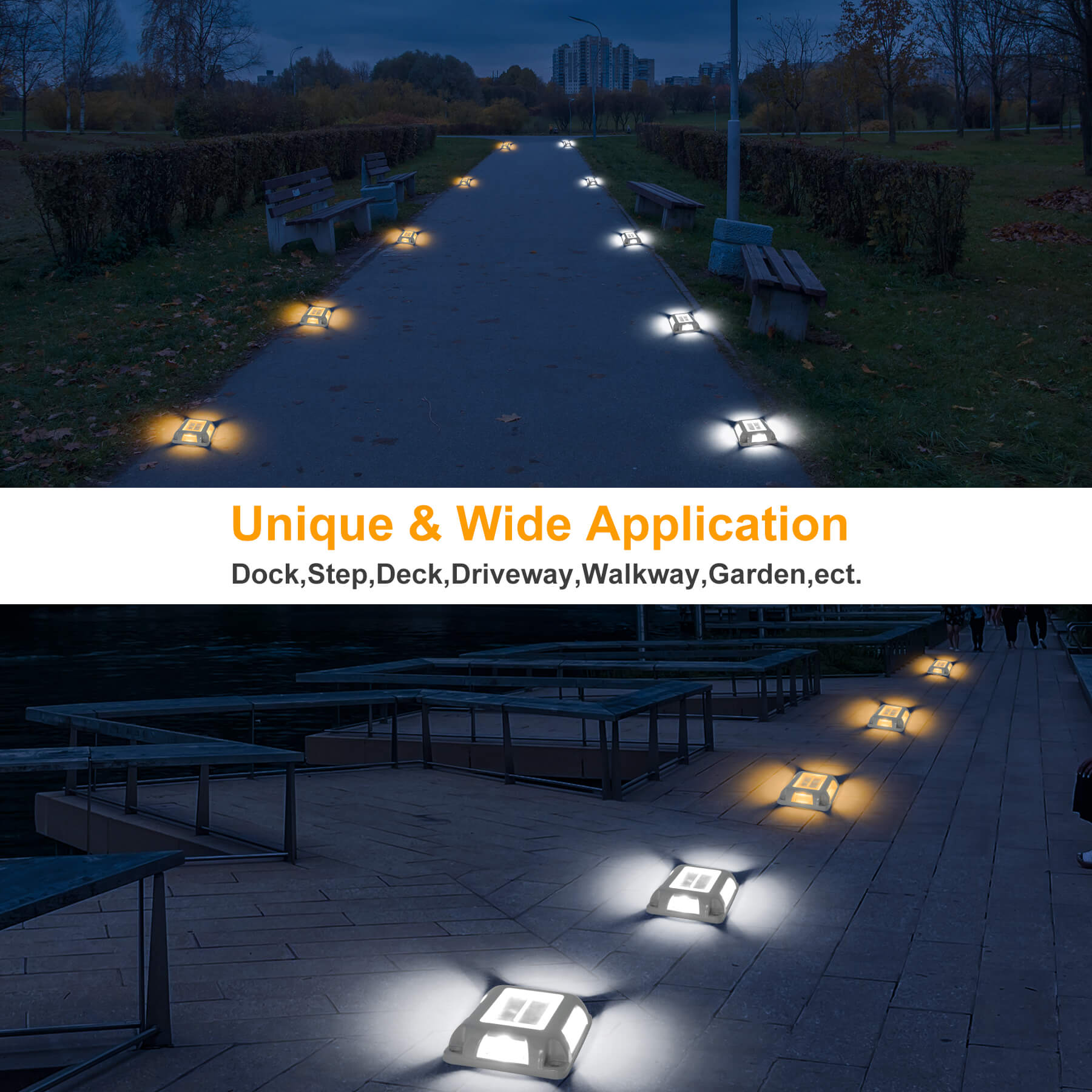 • Quality Guarantee: Our solar deck lights come with a 2-year service and 30-day returns. Dock lights are widely used in docks, decks, driveways, paths, steps, stairs, etc.