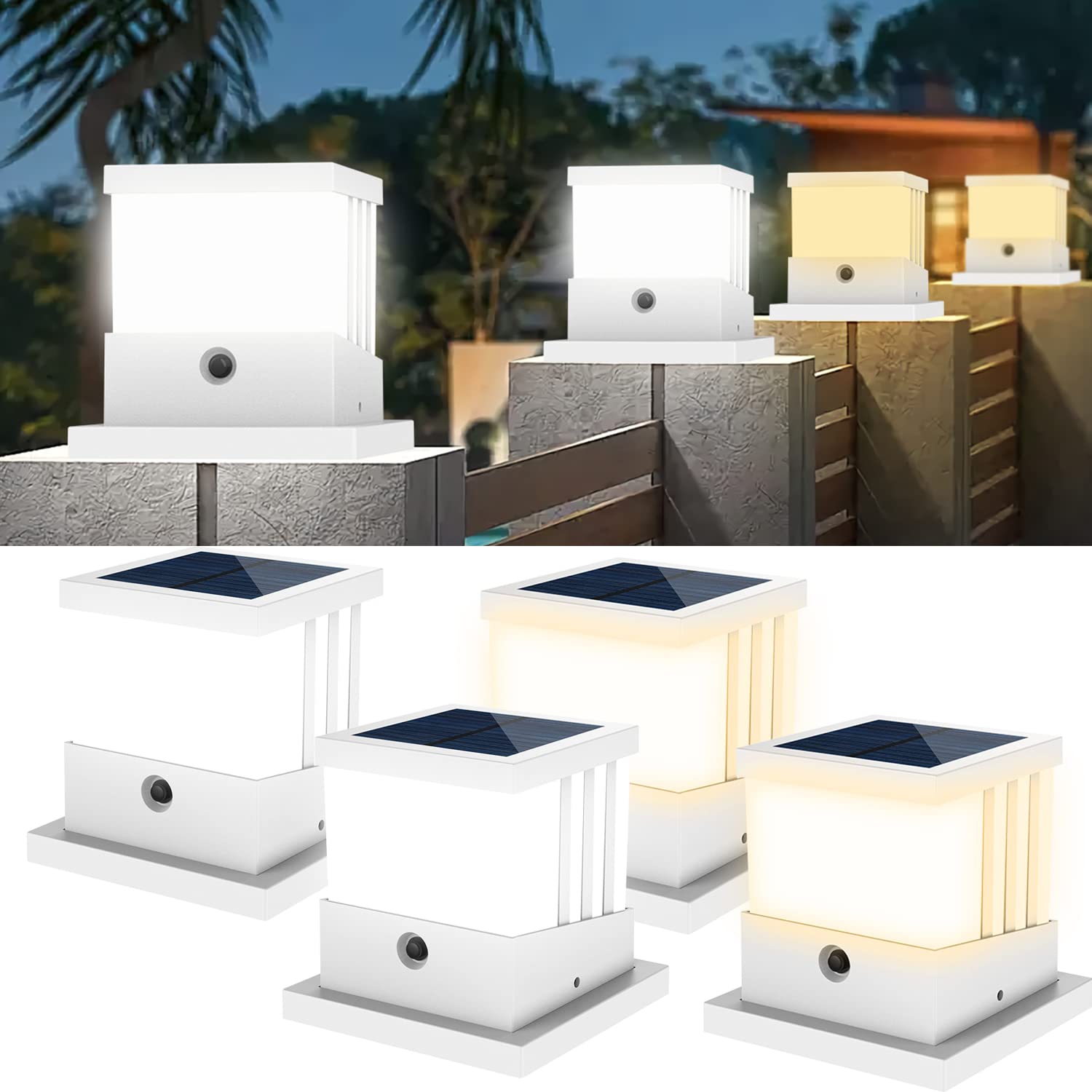 - Adjustable lighting color: You can switch between daylight white 6000K and warm white 3000K/4000K. Modern design and soothing light add a splash of color to your patio, deck, fence, garden, pool, yard, porch and walkway.