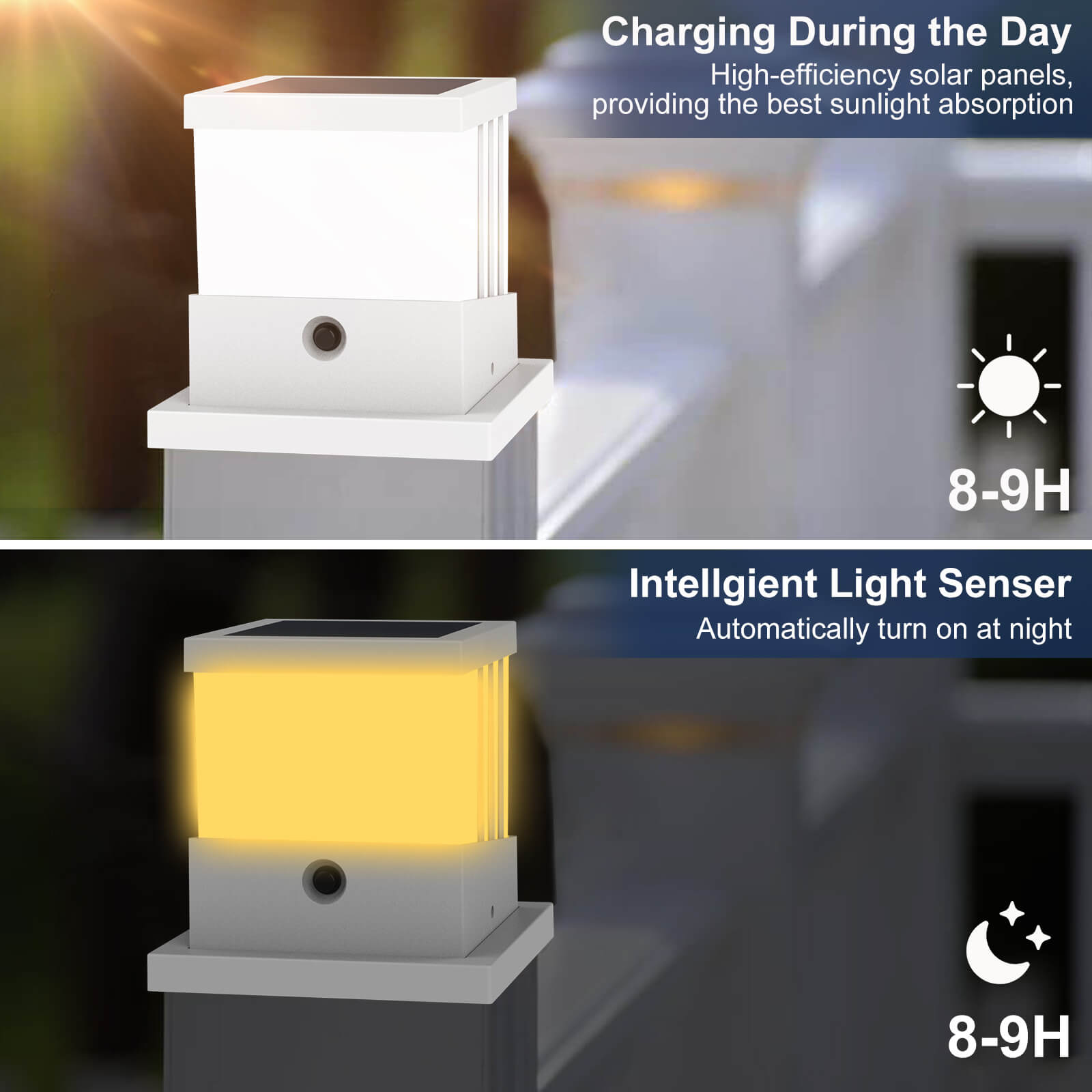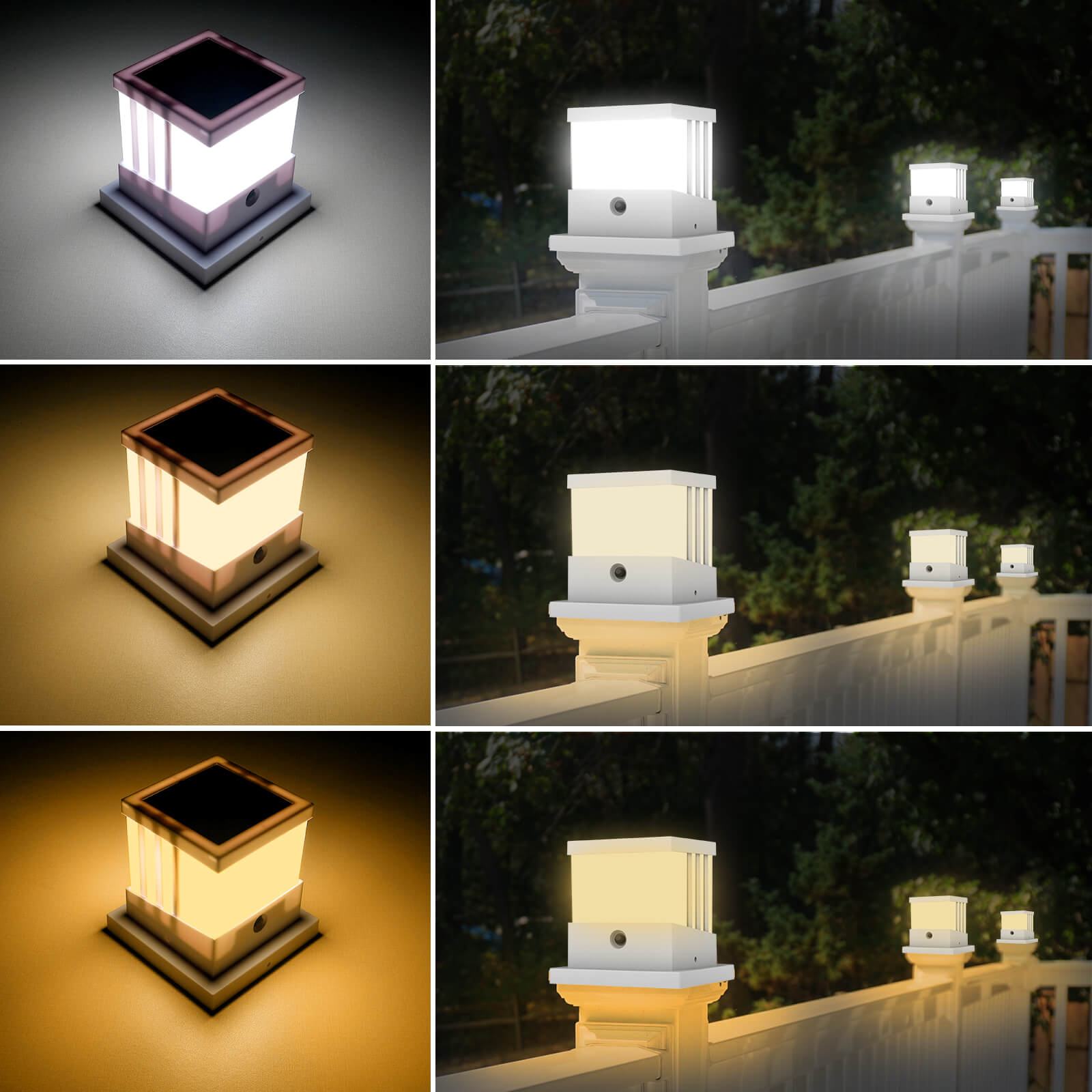 - Weather resistance: The solar post cap light is made of high quality thick ABS plastic, which makes it frost, heat and corrosion resistant. The battery box and LED bulb are sealed to ensure the long life and durability of this deck light. The outdoor solar post light can be widely used without worrying about fading and cracking.