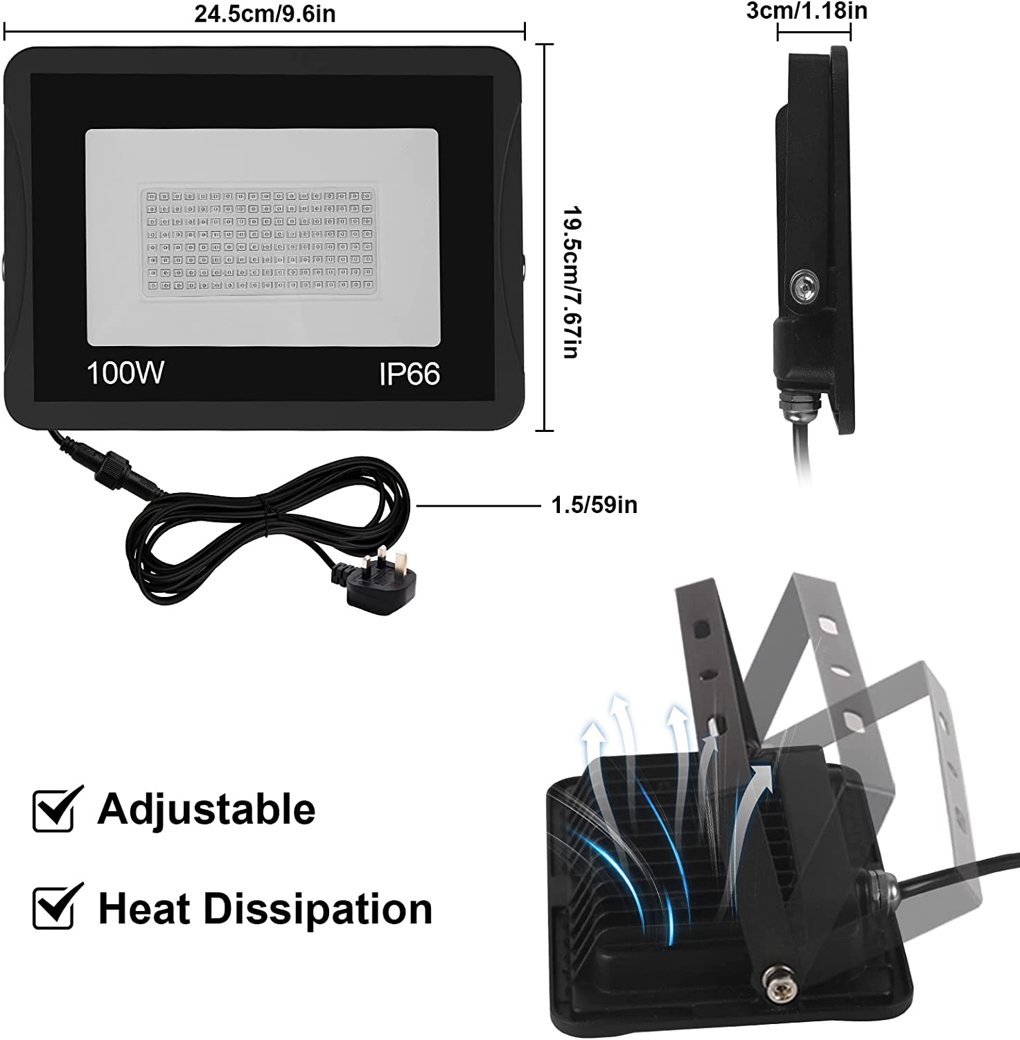 - Easy to operate and install: Plug and play: 5.0ft/1.5m power cord, with American plug, 150° adjustable bracket, black light can be used anywhere with power socket. Unique Die-cast aluminum housing and cooling structure design, protect the emitting LEDs from overheating, ensure totally safe in working