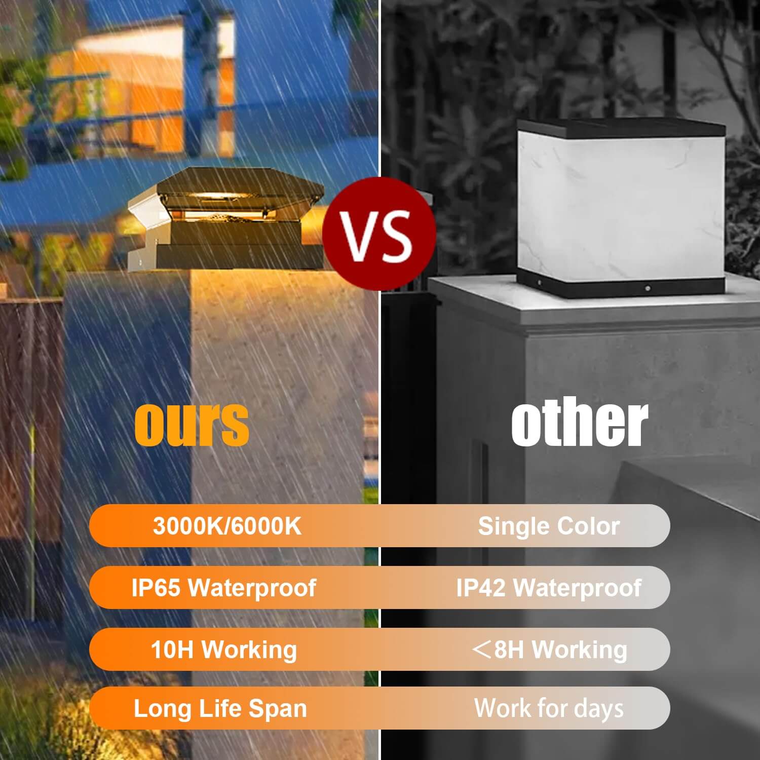 - Weather-Resistant & Waterproof: Embrace worry-free outdoor lighting with our IP65 waterproof post cap light. Our LED post cap light are designed to work flawlessly under various weather conditions, including rain, snow, and frost.