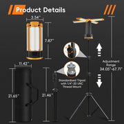 - Compact Camping Lights: Featuring a sturdy, detachable tripod that extends from 34.05" to 67.71", this work light is perfect for overhead repairs or ground-level tasks. A magnetic base and hangable hook offer hands-free convenience, while the included storage bag keeps all components organized