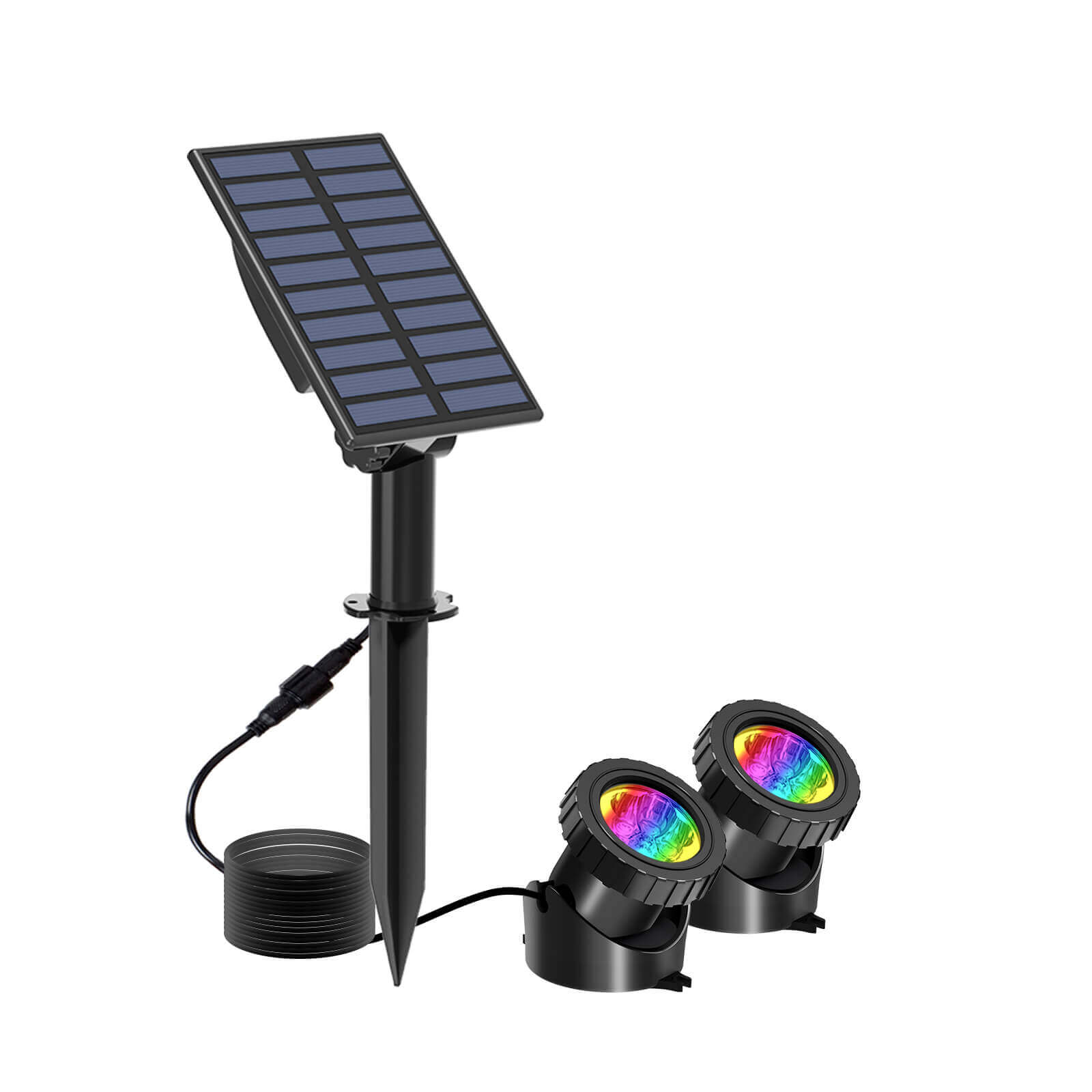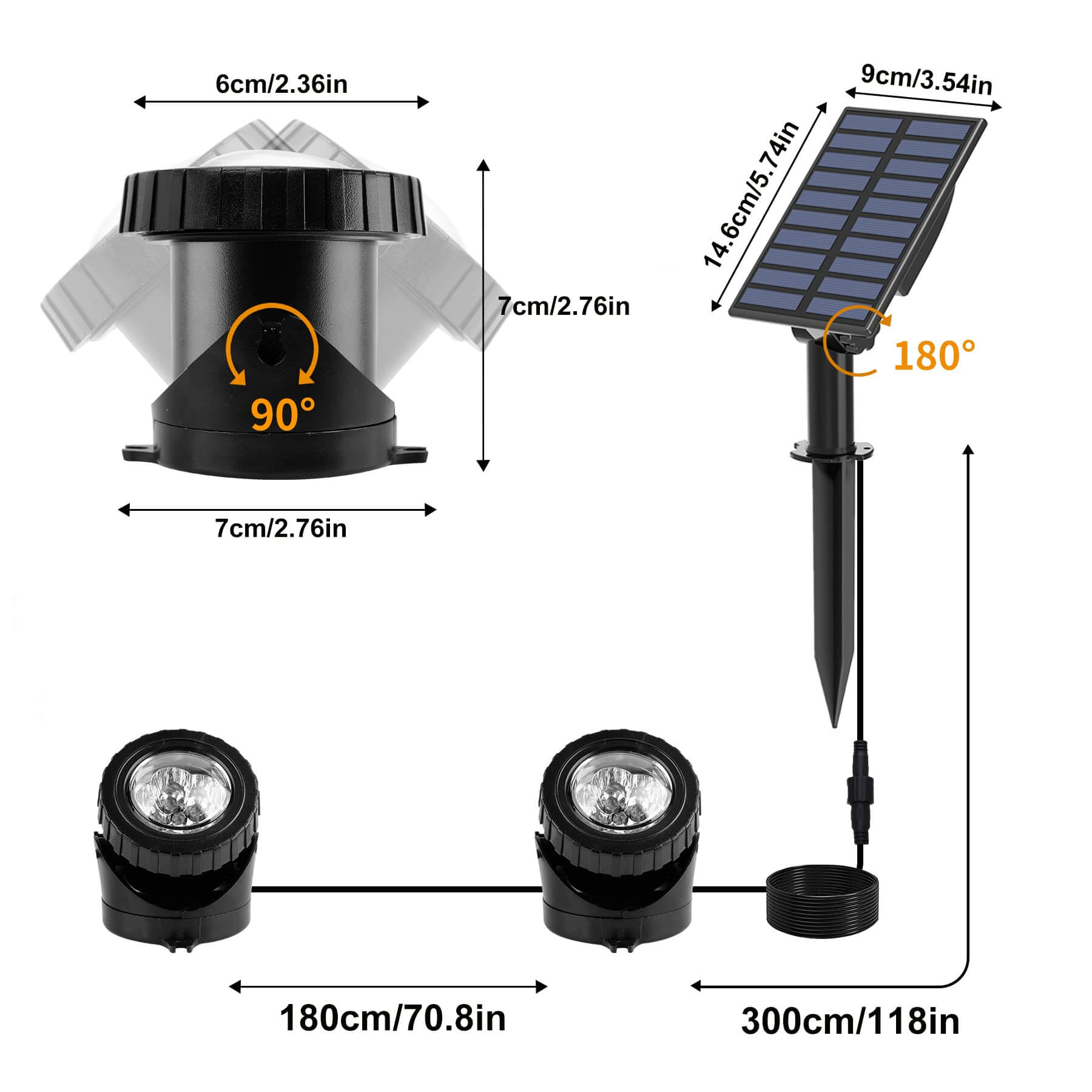 - Solar underwater pond lights: The distance between solar panel and the first light is about 3 m and the length between the individual lights about 1.2 m. This underwater light requires a long press of the switch for 3 seconds to enter the light and off. Please button the ring of the light to avoid the ingress of water.